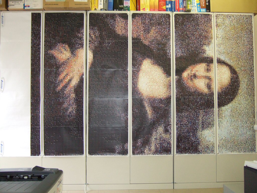 写真毎に固有の色を決定し、絵画の1画素ごとに写真をあてはめて大きな絵を作成します。近くで見ると、1枚1枚は写真ですが、離れてみると絵画に見える不思議な表現を演出します。